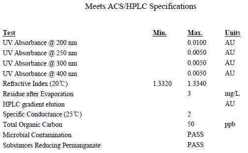 ● HPLC级 —— 控制UV吸收、GC纯度、含水量及蒸发残留等指标。